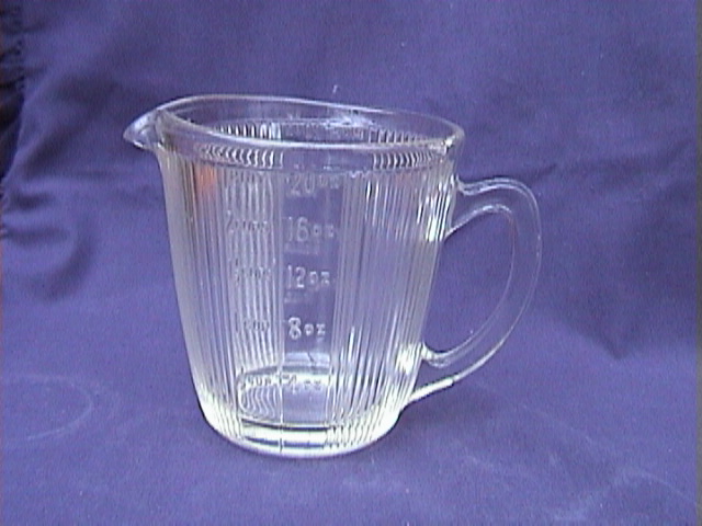 <p></font></h1><center><h3>In excellent condition with no chips, cracks or repairs. Measures in pints, oz and gills. A must have for the Depression glass collector or the kitchen collector. hight 4.5" and in clear depression glass. For any questions on this great little collector's piece and on shipping please email before bidding.