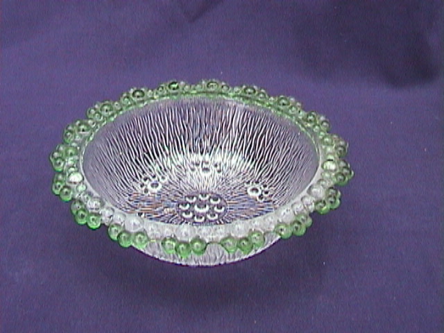 SOLD<center><h1><font color=green>DEPRESSION GLASS<p>INTERESTING BUBBLE DISH