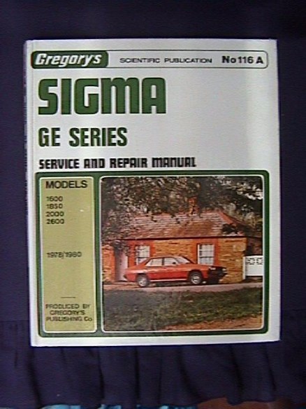 </font></h1><center><h3>Gregory's scientific publication No 116A.For the models 1600,1850,2000,2600, 1978/1980.287 pages of informative information on Sigma's. Contents include: Tools equipment safety, Lubrication and maintenance, Engine tune-up, roadside trouble shooting, engine, cooling system, fuel system, clutch, manual transmission, automatic transmission, rear axle, steering, front suspension, rear suspension, brakes, electrical system, body, emission control, metric conversion tables, glossary of names and terms supplement. Full of diagrams and pictures. Everything you need to know about the Sigma's. For any questions on this book and on shipping please email before bidding.