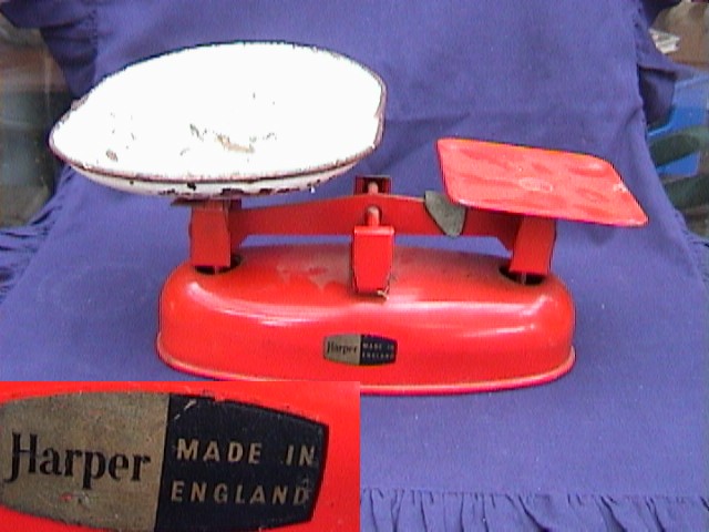 <p></font></h1><center><h3>This is a must have for the colllector in lovely bright red and with its tray. Harper Balance scales were made in England. The scales them selves are in realy good condition the only wear is on the tray it self which either you could restore or keep it rustic glory has some dents and surface rustapprox. full length is 12.5" and stands 6" with the bowl on. For any questions on this great little collector's piece and on shipping please email before bidding.